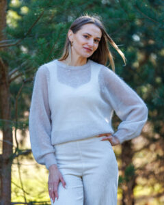 Bērnu moherasvilnas džemperis ir viegls, mīksts un unikāla stila apģērbs, kas smalki uzlabo jūsu izskatu. Tā pūkainā, nedaudz suktā virsma piešķir tam greznuma un komforta sajūtu. Lieliski piemērots dažādiem gadalaiku stiliem.