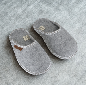 Viegli valkājamas istabas čības, kas izgatavotas no dabīgā filca ar gumijas zolēm.