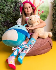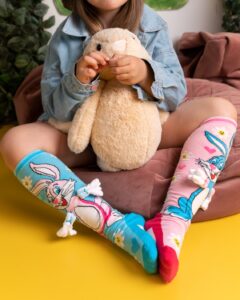 Jautrs dizains, mīkstas un ērtas – šīs krāsainās bērnu zeķes ar Zaķa apskāviena tēlu ir radītas, lai sniegtu prieku ikdienā. Spilgtas krāsas, rotaļīgi raksti un burvīgais Zaķa apskāviens padara šīs zeķes gan stilīgas, gan funkcionālas.