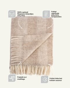 Jaunzēlandes aitu vilnas sega ir silta, mīksta un dabiska. Tā ir ideāls mājas tekstila papildinājums, kas piešķir mājīgumu un komfortu.