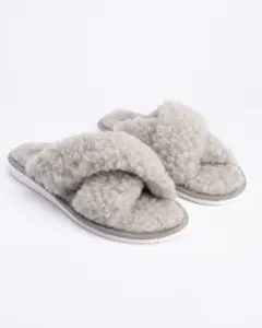 WoolLando dabīgās merino vilnas pelēkas atvērtas purngalu čības