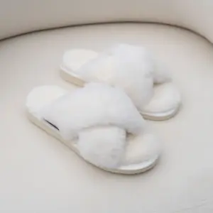 WoolLando sieviešu dabīgās kažokādas baltas atvērtas čības