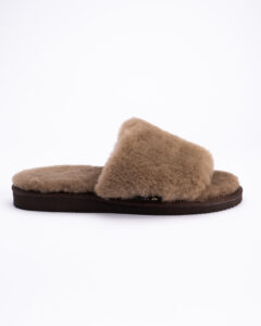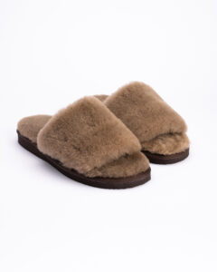 WoolLando sieviešu dabīgās kažokādas brūnas atvērtas čības