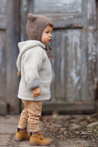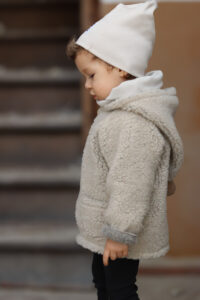 Zaffiro jēra vilnas bērnu jaka ar kapuci KRĒMA KRĀSĀ