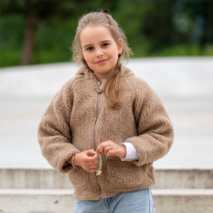 Zaffiro jēra vilnas bērnu jaka ar kapuci BRŪNA